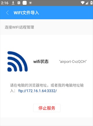 传输完成后,点击「停止服务」即可关闭该功能,保障设备安全。