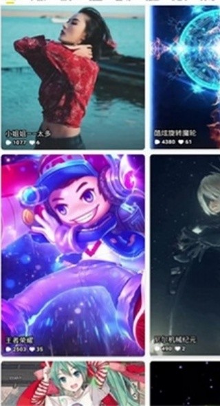1、展示各类壁纸内容(包含真人、游戏、动漫等风格),同时显示壁纸的热度数据(比如点赞、浏览量),是用户浏览、选择壁纸的核心展示页。