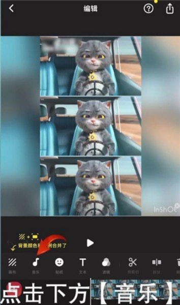 第一步打开inshot直接导入一个视频,然后选择底部的“音乐”选项。