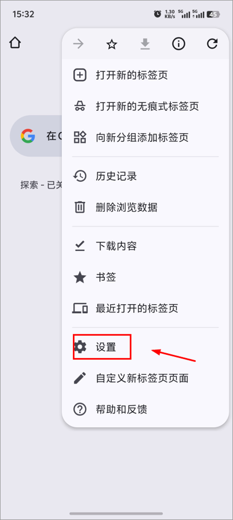 2、接着点击设置,进入浏览器设置界面。