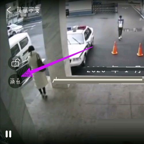 3、切换至全屏后,点击屏幕,点击屏幕左方【换台】按钮(如图所示)。