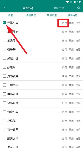 3、最后进入书源界面,我们就可以选择启用书源啦,还可以自行添加书源。