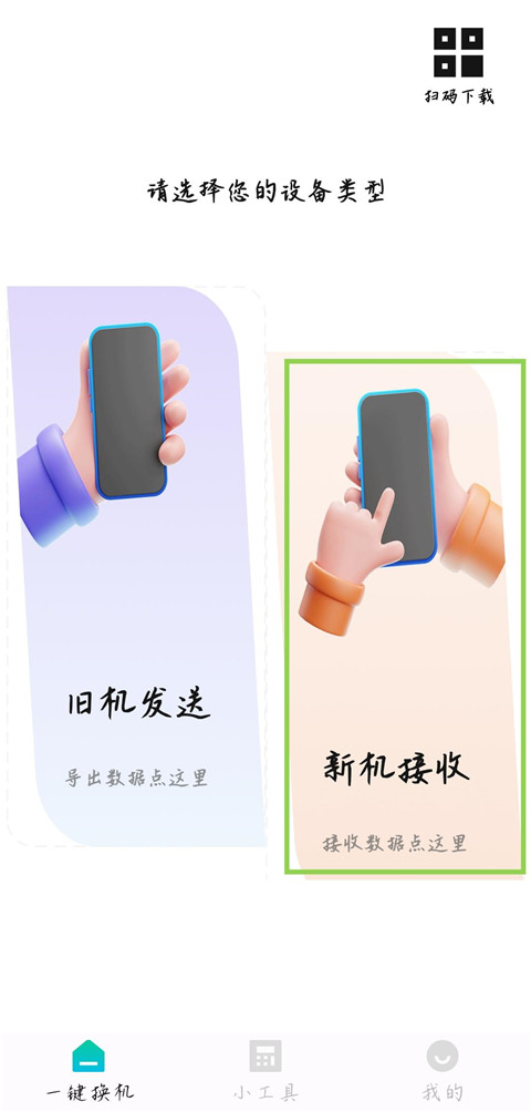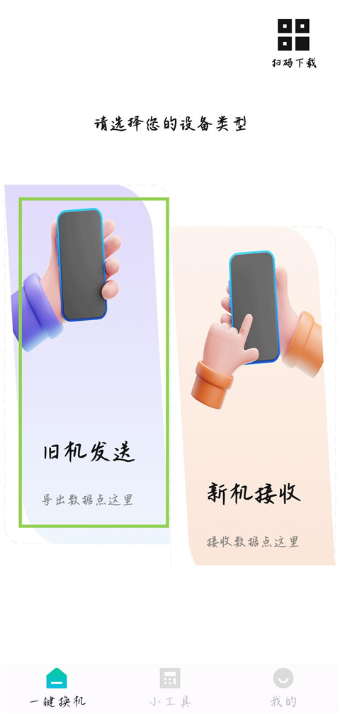 1、打开旧手机中的换机互传助手安卓版,点击【旧机发送】,导出数据。